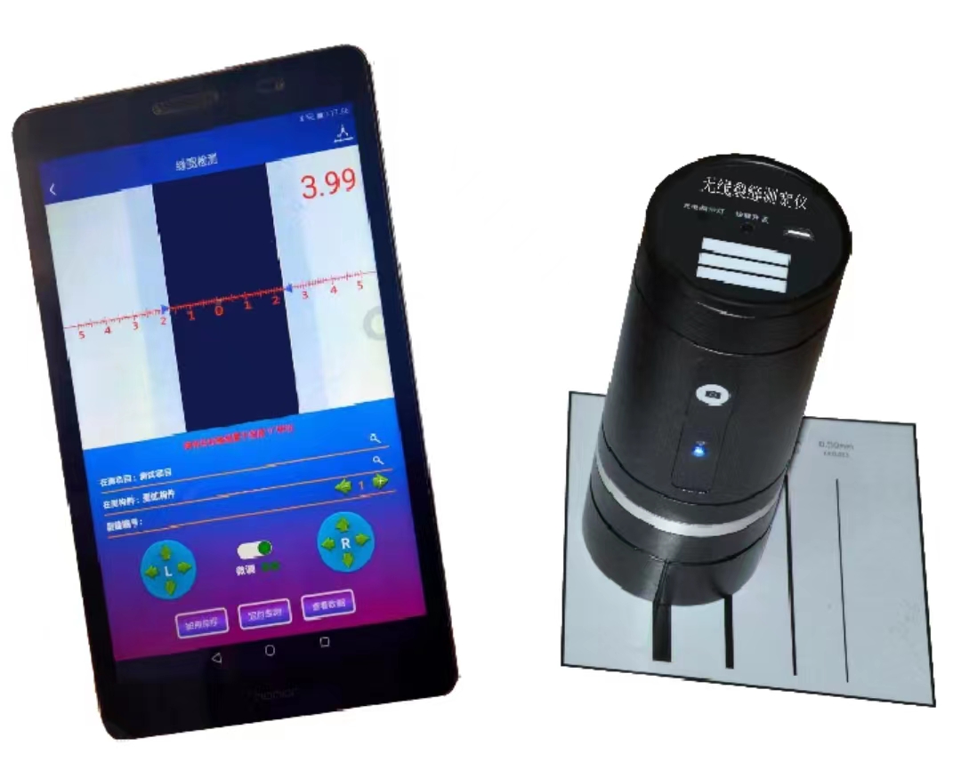無線裂縫寬度測(cè)試儀是用于測(cè)量橋梁、隧道、塔、建筑物、混凝土構(gòu)件、路面、金屬構(gòu)件表面等裂縫的寬度測(cè)量。無線裂縫寬度測(cè)試儀采用現(xiàn)代化電子成像技術(shù),將被測(cè)結(jié)構(gòu)原貌成像于平板電腦上,通過屏幕上高精準(zhǔn)刻度尺自動(dòng)讀出真實(shí)可靠的裂縫寬度數(shù)據(jù)。
