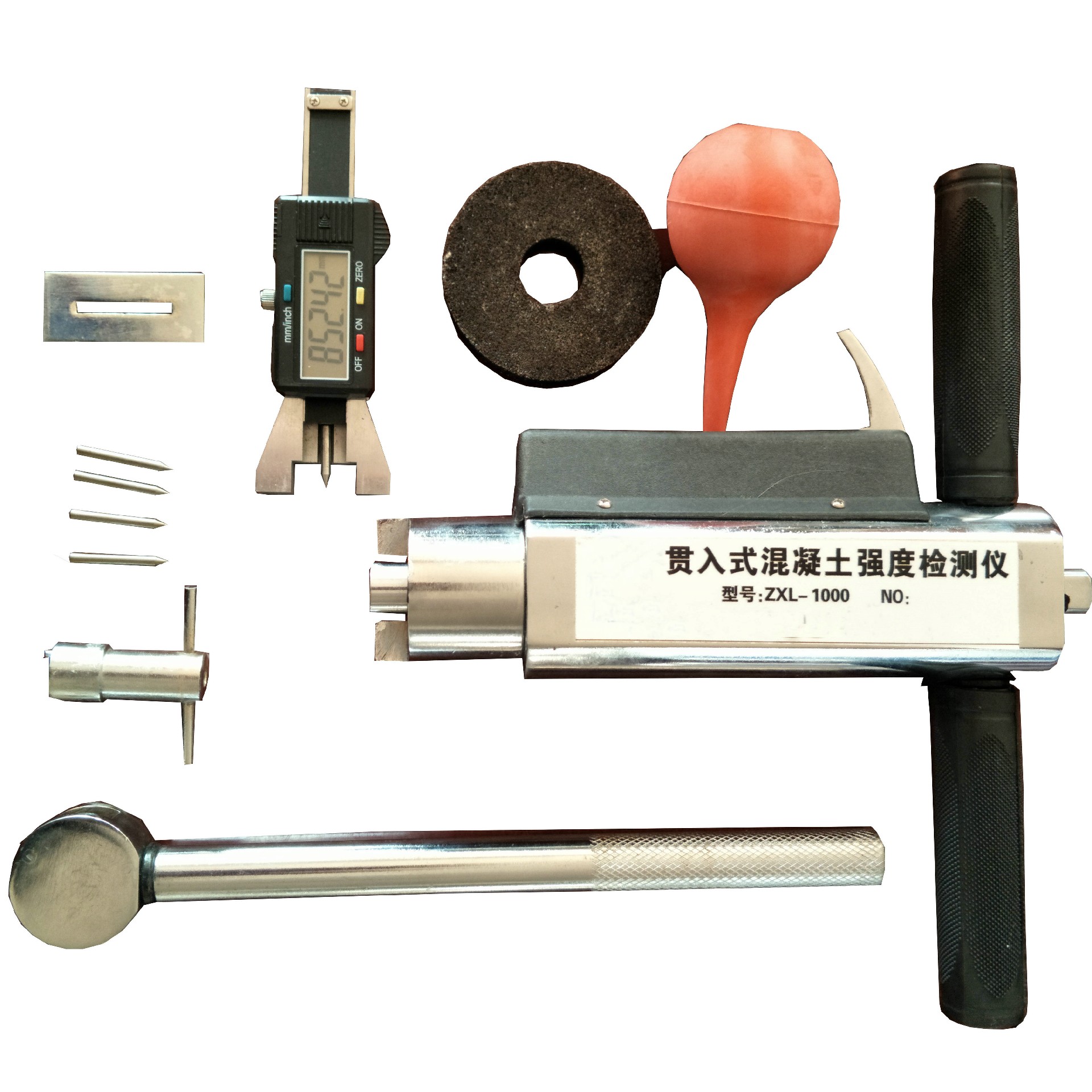 ZXL-1000型貫入式混凝土強度檢測儀是根據無損檢測技術的快速發展而研發的產品近年來我國無損檢測技術有了較快的發展。除了回彈法、超聲法外相繼出現了取芯法、拉撥法、超聲回彈綜合法等。上述方法大多用于檢測硬化后的混凝土強度,而對混凝土的早期強度(指拆模前的混凝土強度)至今尚無較好的無損檢測方法。現在的施工規范和新的建筑體系都需要采用無損檢測方法,來檢測混凝土早期強度。如大模板的拆模強度,予應力構件放松前的混凝土強度,以及冬季施工混凝土臨界強度等。70年代美國和日本先后根據貫入阻力原理,已研制出一種新型混凝土測強儀。這種新型儀器與回彈法靠混凝土表面硬度來判定強度有所不同。它是通過測釘貫入混凝土內部測其強度,因此更能真實地反應混凝土強度。它解決了回彈法一直不能檢測的如混凝土的早期強度,多年老建筑物混凝土構件的強度,遭受化學腐蝕、火災以及硬化期間遭受凍結、融化等傷害的混凝土構件的強度。