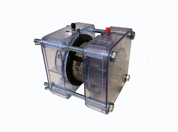 由于我國的混凝土標準試樣多為100*100*100mm的立方試塊,與ASTM C1202標準所用的圓柱體試樣不同,在使用該標準時多有不便,因此,本公司根據多年研究結果對ASTM C1202測試系統進行了多項改進,夾具設計既適合立方體也適合圓柱體混凝土試塊,試樣準備時間很短,兩種試件均可在不涂膠的狀態下直接上機進行測試(常規表表面平滑試件,存在缺角及非粗糙面表的試件除外),試樣夾具的電極采用耐腐電極,可長期使用。